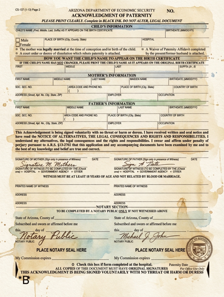 Voluntary Acknowledgment of Paternity in Arizona